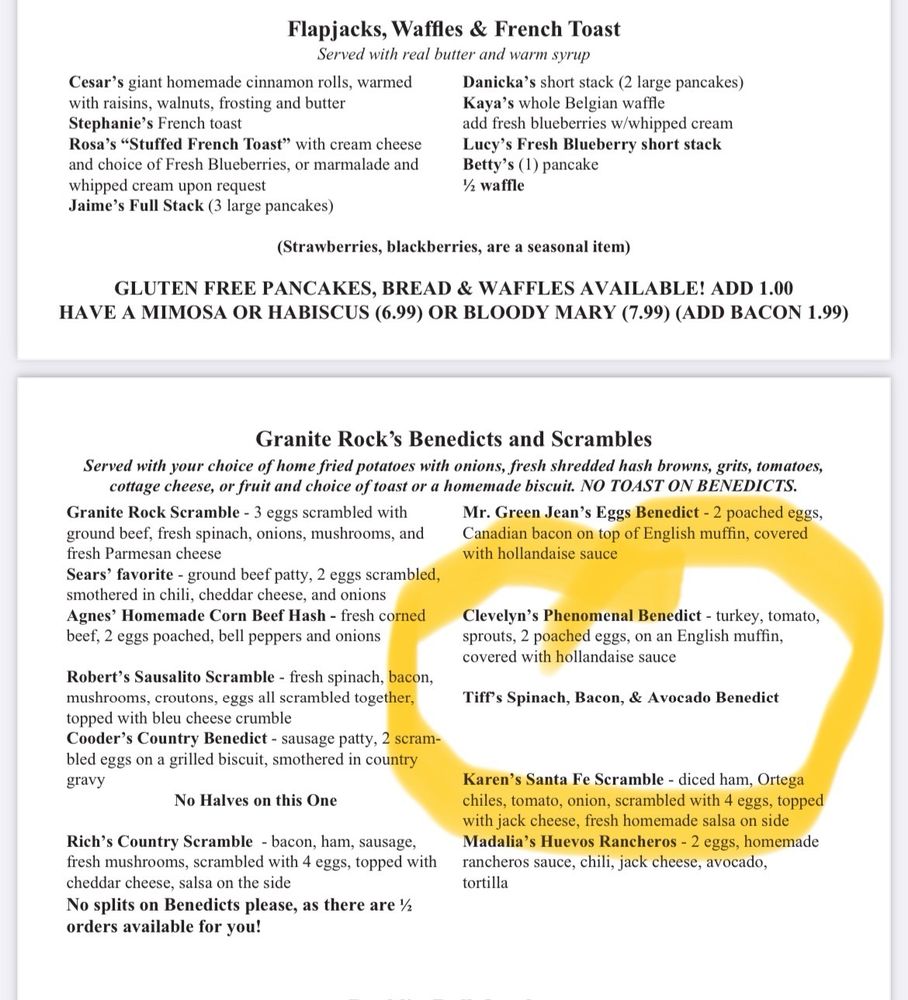 Granite Rock's Benedicts and Scrambles